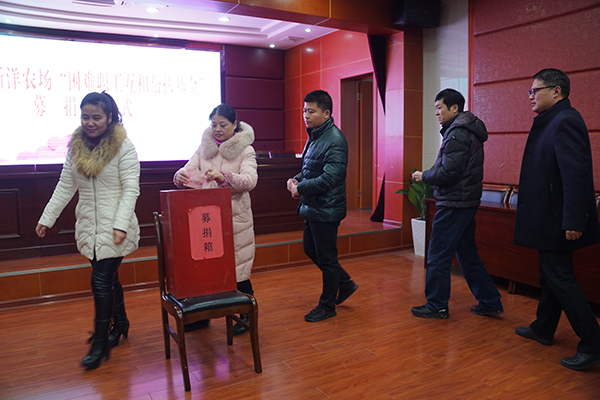 為建立健全扶貧幫困工作長效機制,弘揚團結友愛、互幫互助的傳統(tǒng)美德,1月2日,新洋農(nóng)場舉行2018年“困難職工互相幫扶基金”募捐儀式。場領導陳守軍、潘元海、戴學林、王煜明出席,機關全體工作人員參加了儀式。