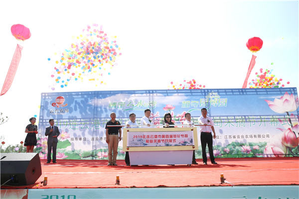 青山毓黛迎賓客,綠水含情荷飄香。又到了荷花盛開、荷香四溢的美好時節,7月20日上午,由連云港市文化廣電和旅游局、連云港高新技術產業開發區指導,江蘇省云臺農場有限公司主辦的“2019連云港市第四屆荷花節暨葡萄采摘節”在云臺農場“云水灣”濕地公園盛大開幕。連云港市副市長陳書軍,省農墾集團黨委委員、總會計師劉克英,高新區黨工委書記陳佑龍等市、區相關單位部門,省農墾系統部分兄弟單位、陜西省農墾大荔農場公司等領導,農場公司黨委書記、董事長、總經理劉衛華,黨委副書記宋光鋒、副總經理黃祖兵等場領導班子成員及近萬名游客參加了開幕式。