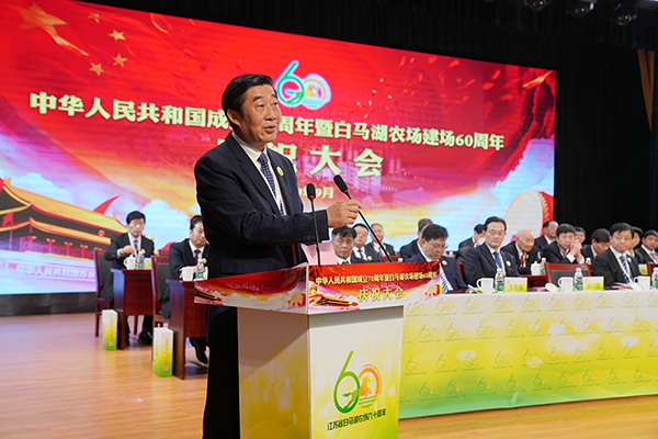 胡兆輝在講話中指出,建場60年來,一代又一代白馬湖人傳承和弘揚“艱苦奮斗、勇于奉獻、開拓創新”的農墾精神,櫛風沐雨、薪火相傳,形成了以種植業為基礎,種子為龍頭,育繁推、產加銷一體化經營、綠化林苗和水產養殖協同發展的現代農業產業體系;實現了綜合實力和發展質量穩步提升,城鎮面貌和生態環境持續改善,公共服務和社會治理水平顯著提高,職工群眾生活質量和幸福指數不斷攀升。