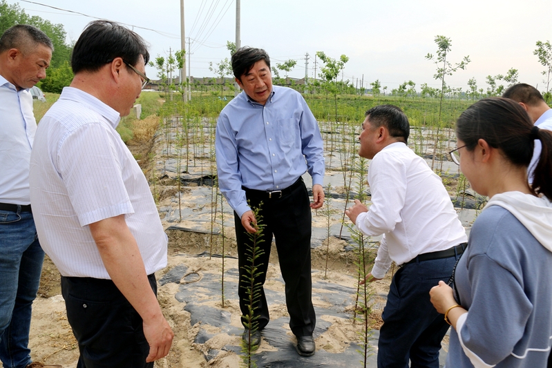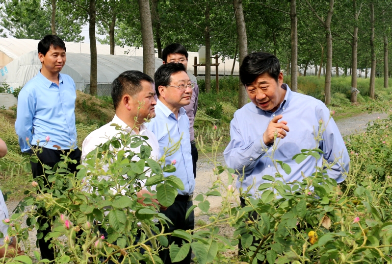 胡兆輝一行先后來到344國道新曹段7公里長綠色通道、匡東烘干線、何垛分場林下套種中藥材基地、何垛分場小麥高產片、孫東大馬士革玫瑰種植基地及香料公司玫瑰精油萃取車間等現場進行了考察。每到一處胡總經理都聽取了新曹當前農業生產、產業轉型發展等工作情況匯報,仔細詢問了今年麥子生長情況、“三夏”各項準備工作、林業發展情況、“一朵花”玫瑰產業鏈發展狀況等方面的工作。