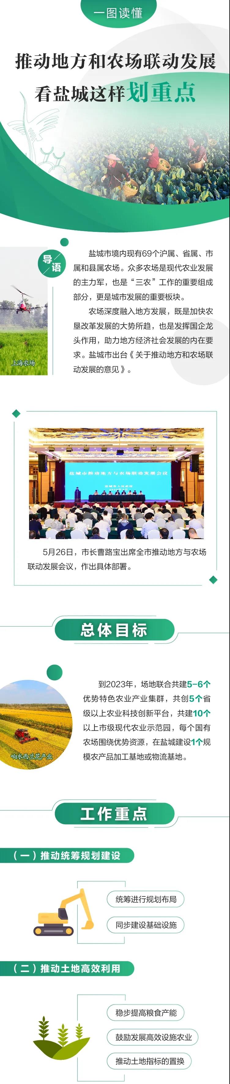 鹽城是長三角27個中心區城市之一,空間大、生態好、農業強,境內現有滬屬、省屬、市屬和縣屬農場共69個。市委市政府高度重視“三農”工作,研究出臺《關于推動地方與農場聯動發展的意見》,加強頂層設計,推動優勢疊加,促進地方與農場聯動發展,實現由農業大市向農業強市轉變。