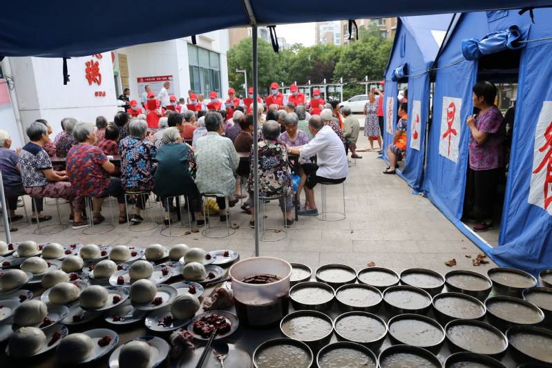 7月22日,早上5點多,第一天參加活動的支部黨員已早早來到通盛社區(qū)莫文隋愛心粥服務點,開始了一個忙碌而有意義的早晨。黨員志愿者們身著紅色馬甲,與其他志愿者一起為當天前來就餐的85位孤寡老人、殘疾人、環(huán)衛(wèi)工端飯送菜,忙碌不停,用最直接、最貼心的語言、行動,送上溫暖和關愛。就餐者一句簡單的謝謝,讓黨員志愿者心中都涌動著難以言盡的感動。