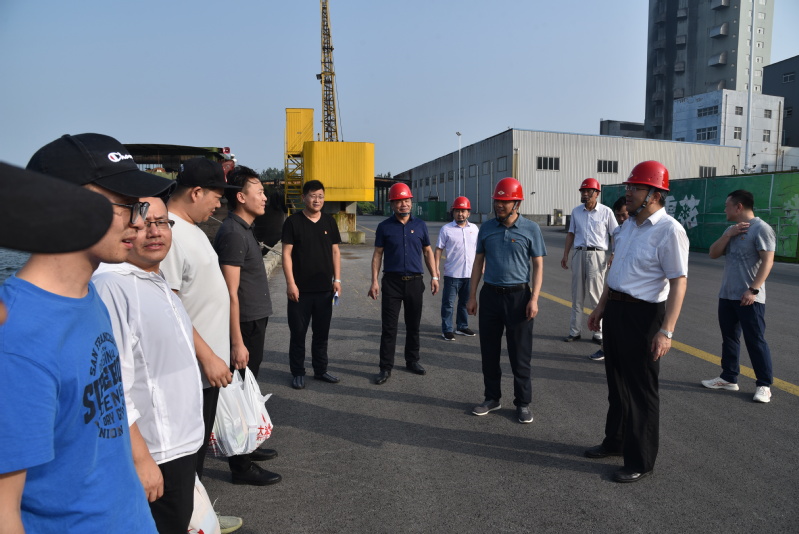 楊義林一行來到箱式生產(chǎn)線、工務(wù)部維修車間和船運碼頭,看望慰問了高溫下作業(yè)的一線員工,并親手將清涼降暑慰問用品送到了員工們手中。楊義林對奮戰(zhàn)高溫、堅守崗位的一線員工表示感謝,并反復(fù)叮囑大家當(dāng)前在高溫天氣下,一定要做好日常勞保防護,多補充水分鹽分,落實好消暑降溫措施,注意安全。
