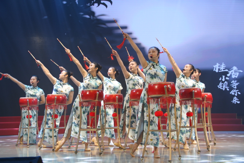 晚上7點,聯(lián)歡晚會在大型歌舞《慶豐收迎小康雙勝利——盛世歡歌》中拉開帷幕。整臺晚會主題突出,反映了農場現(xiàn)代農業(yè)建設成果和人文風貌。尤其是打鼓說唱《桂香小鎮(zhèn)等你來》,充分展示了濱淮農場濃厚的“桂香”文化。民樂合奏《桂鄉(xiāng)情韻》在觀眾意猶未盡中為晚會落下帷幕。