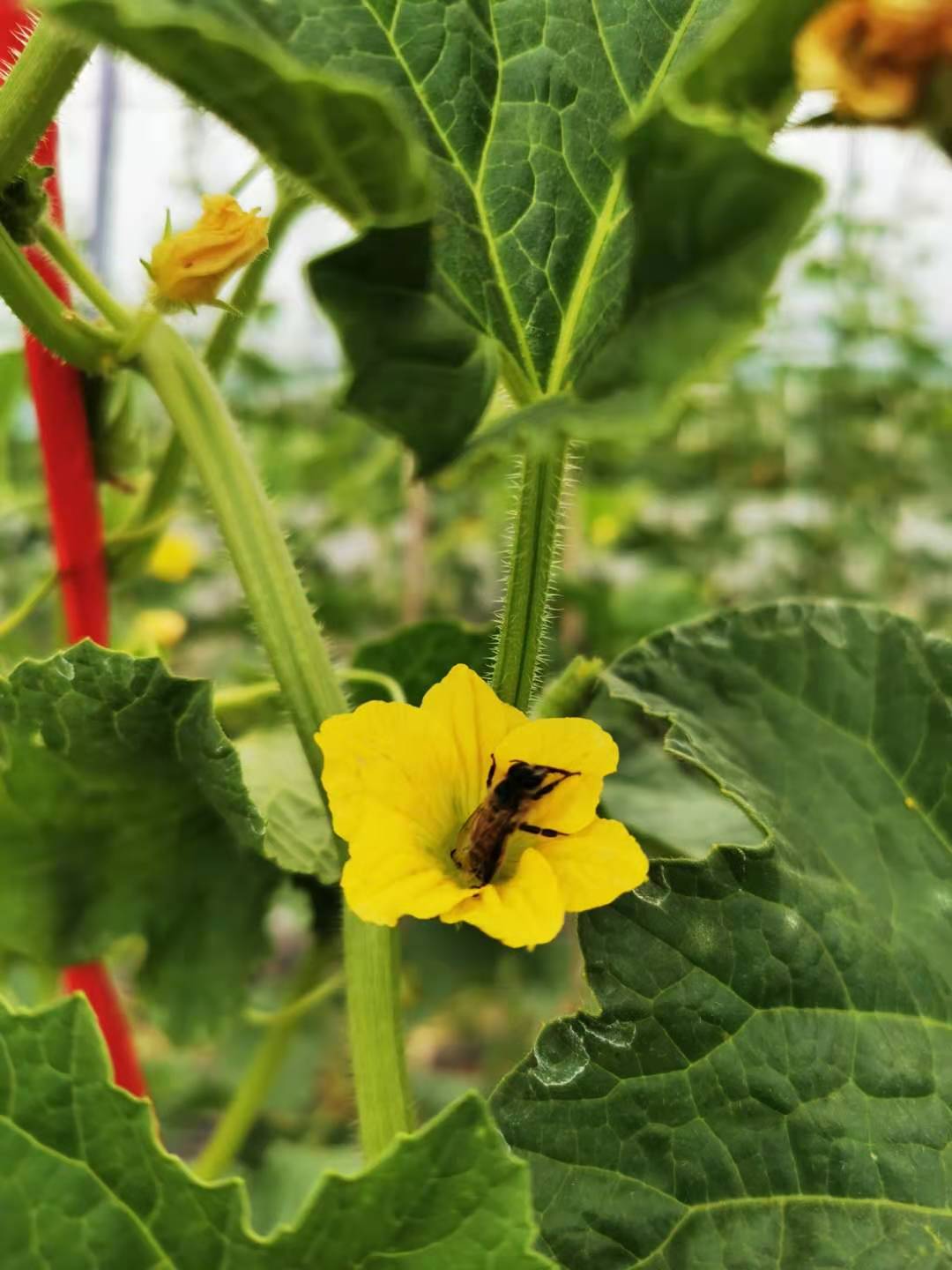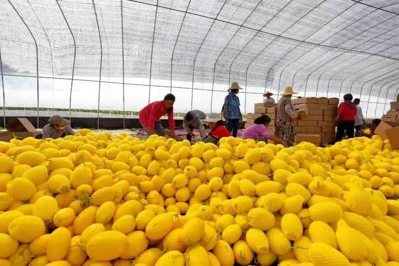針對扶貧村土地及氣候特性,公司對當?shù)胤N植品種及種植技術(shù)進行優(yōu)化調(diào)整,以種植生產(chǎn)黃金蜜瓜(上茬)+豆丹養(yǎng)殖(下茬)+豆角種植為主產(chǎn)業(yè),試作蒜苗+菠菜間套作復(fù)種模式。其中黃金蜜瓜平均畝產(chǎn)5000斤以上,豆角平均畝產(chǎn)4000斤以上,豆丹平均畝產(chǎn)達180斤以上。在黃金蜜瓜種植期間首次采取單株雙果,蜜蜂試驗授粉種植管理模式,實現(xiàn)了全程綠色種植,甜瓜長勢茂盛,個頭碩大,均能達到單頭3斤以上,彌補了全國6-7月份黃金瓜市場品種空白,創(chuàng)造了較好的經(jīng)濟及社會價值。