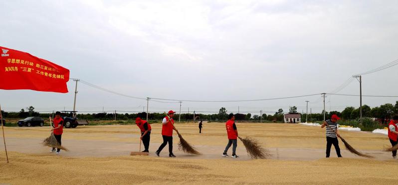 為了給“三夏”的生產(chǎn)提供零距離的服務(wù),黃海機(jī)關(guān)、社區(qū)“三夏”工作黨員志愿者服務(wù)隊(duì)、 黃海分公司“三夏”工作隊(duì)和黃海服務(wù)“三夏”工作青年先鋒隊(duì),奔向一線,聞令而動(dòng)、依令而行,以最快行動(dòng)投身投身到“三夏”工作中,開(kāi)展夏糧助收,曬糧掃場(chǎng),確保夏糧顆粒歸倉(cāng),全力以赴打好“三夏”生產(chǎn)攻堅(jiān)戰(zhàn)。黨員志愿者服務(wù)隊(duì)隊(duì)員佩戴黨員徽章、亮明身份、沖在“三夏”一線。
