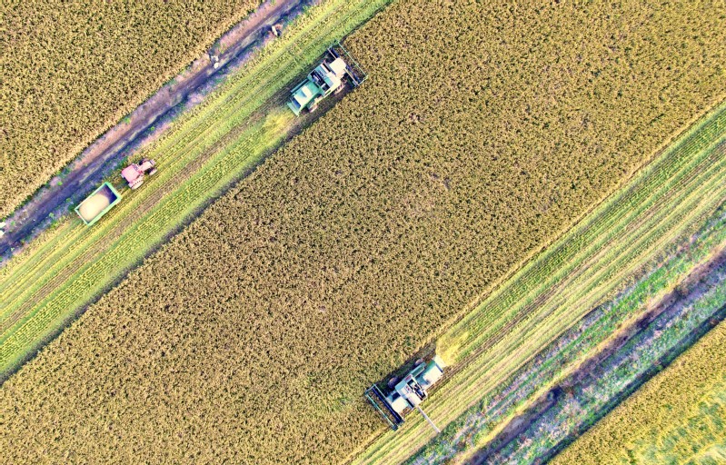 收割、脫粒、粉碎秸稈一氣呵成,色澤金黃、顆粒飽滿的水稻被裝入運(yùn)糧車中送到曬場(chǎng)。今年“三秋”工作,復(fù)興圩分公司狠抓機(jī)械收割質(zhì)量,牢固樹立“減損就是增收”的理念,各大隊(duì)加強(qiáng)收割作業(yè)質(zhì)量檢查力度,強(qiáng)調(diào)質(zhì)量第一,確保秋糧“豐收在望”變?yōu)椤柏S收到手”。