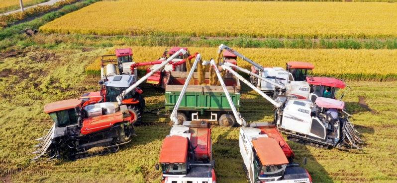 10月25日,蘇墾農(nóng)發(fā)江心沙分公司搶抓晴好天氣,組織收割機(jī)集中開(kāi)展大規(guī)模水稻收割作業(yè),切實(shí)將“豐收在望”轉(zhuǎn)化為“豐收到手”,彰顯農(nóng)業(yè)“國(guó)家隊(duì)”擔(dān)當(dāng)。收割現(xiàn)場(chǎng),收割機(jī)、運(yùn)糧車(chē)來(lái)來(lái)往往,一片繁忙景象。