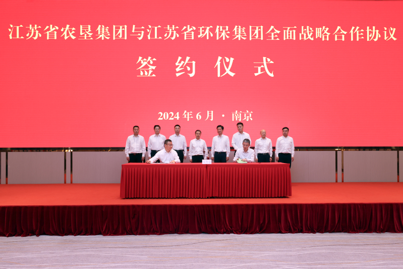 6月11日上午,省農墾集團與省環保集團全面戰略合作協議簽約儀式在南京舉行。集團公司黨委書記、董事長吳本輝致辭,省環保集團黨委書記、董事長方斌斌講話。集團公司黨委副書記、總經理姜建友,黨委委員、副總經理劉衛華,省環保集團黨委副書記、總經理魏愛春,黨委委員、副總經理陸繼根、姜勇出席簽約儀式。集團公司黨委委員、副總經理王立新主持簽約儀式。