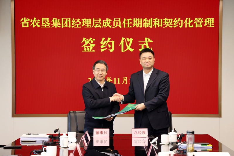 11月27日上午,集團公司舉行經理層成員任期制和契約化管理簽約儀式。集團黨委書記、董事長吳本輝代表董事會與經理層成員簽訂聘任協議和2024年度及新一輪三年任期經營業績責任書,黨委副書記朱浩主持會議。