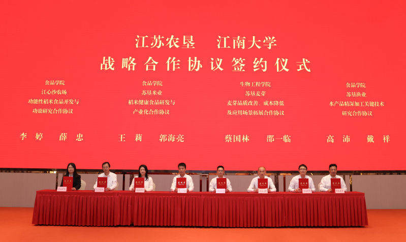 集團(tuán)公司總經(jīng)濟(jì)師、相關(guān)部門(mén)負(fù)責(zé)人,江心沙農(nóng)場(chǎng)、蘇墾農(nóng)發(fā)、蘇墾漁業(yè)等單位負(fù)責(zé)人,江南大學(xué)相關(guān)學(xué)院及部門(mén)負(fù)責(zé)人、專(zhuān)家教授等參加簽約儀式。