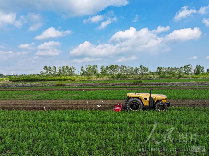 2025年5月16日,位于江蘇省淮安市金湖縣的江蘇農墾寶應湖農場歐盟國標雙認證的有機稻種植基地,一臺240馬力無人智能拖拉機正在進行旋耕作業。