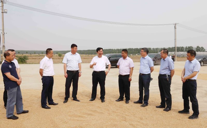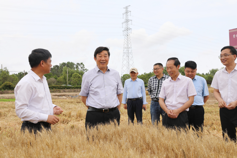 6月10日上午,集團公司黨委副書記、總經(jīng)理、蘇墾農(nóng)發(fā)董事長胡兆輝到崗埠調(diào)研指導(dǎo)工作。集團公司辦公室、蘇墾農(nóng)發(fā)公司有關(guān)領(lǐng)導(dǎo),崗埠農(nóng)場公司黨委班子成員等陪同調(diào)研。胡兆輝一行先后來到崗埠農(nóng)場環(huán)境整治項目徐圩大溝、振興路景觀河、張贛河水環(huán)境治理項目,實地察看了高橋生產(chǎn)區(qū)姜莊隊小麥?zhǔn)崭瞵F(xiàn)場、綜合服務(wù)中心現(xiàn)場及崗埠富民科技園,現(xiàn)場與職工親切交談,聽取農(nóng)場公司情況匯報,了解了“三夏”工作整體推進、崗埠環(huán)境整治以及科技園發(fā)展等情況。胡兆輝要求,崗埠廣大黨員干部要加強黨史學(xué)習(xí)教育,做到學(xué)史力行,知行合一,要有 “爭當(dāng)表率、爭做示范、走在前列”的使命擔(dān)當(dāng),認(rèn)真做好“三夏”協(xié)調(diào)推進工作,確?!叭摹惫詰?zhàn)役全勝。他指出,“三夏”工作是當(dāng)前重點工作,崗埠要樹立全場“一盤棋”的大局意識,一切服從“三夏”、一切服務(wù)“三夏”,要科學(xué)合理安排,加強田間技術(shù)服務(wù)指導(dǎo)和農(nóng)資、農(nóng)機調(diào)度,統(tǒng)籌做好夏收、夏管、夏種工作,確保夏糧豐產(chǎn)豐收、顆粒歸倉。他強調(diào),崗埠新的黨委班子成員較為年輕,有活力、有擔(dān)當(dāng),要以黨史學(xué)習(xí)教育為契機,加強團結(jié),相互支持,齊心協(xié)力謀劃好崗埠發(fā)展,認(rèn)真開展好“我為職工居民辦實事”實踐活動,進一步加快產(chǎn)業(yè)發(fā)展