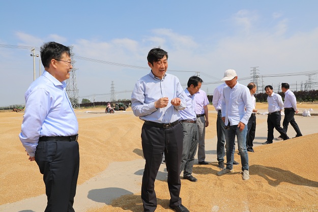 6月14日下午,集團公司總經理、蘇墾農發董事長胡兆輝一行到濱淮檢查指導三夏工作。濱淮領導班子李德利、傅龍光、李文忠、馬傳武、鄧權才、劉雄飛等陪同檢查。  在濱淮分公司二生產區五大隊場頭,李德利匯報
