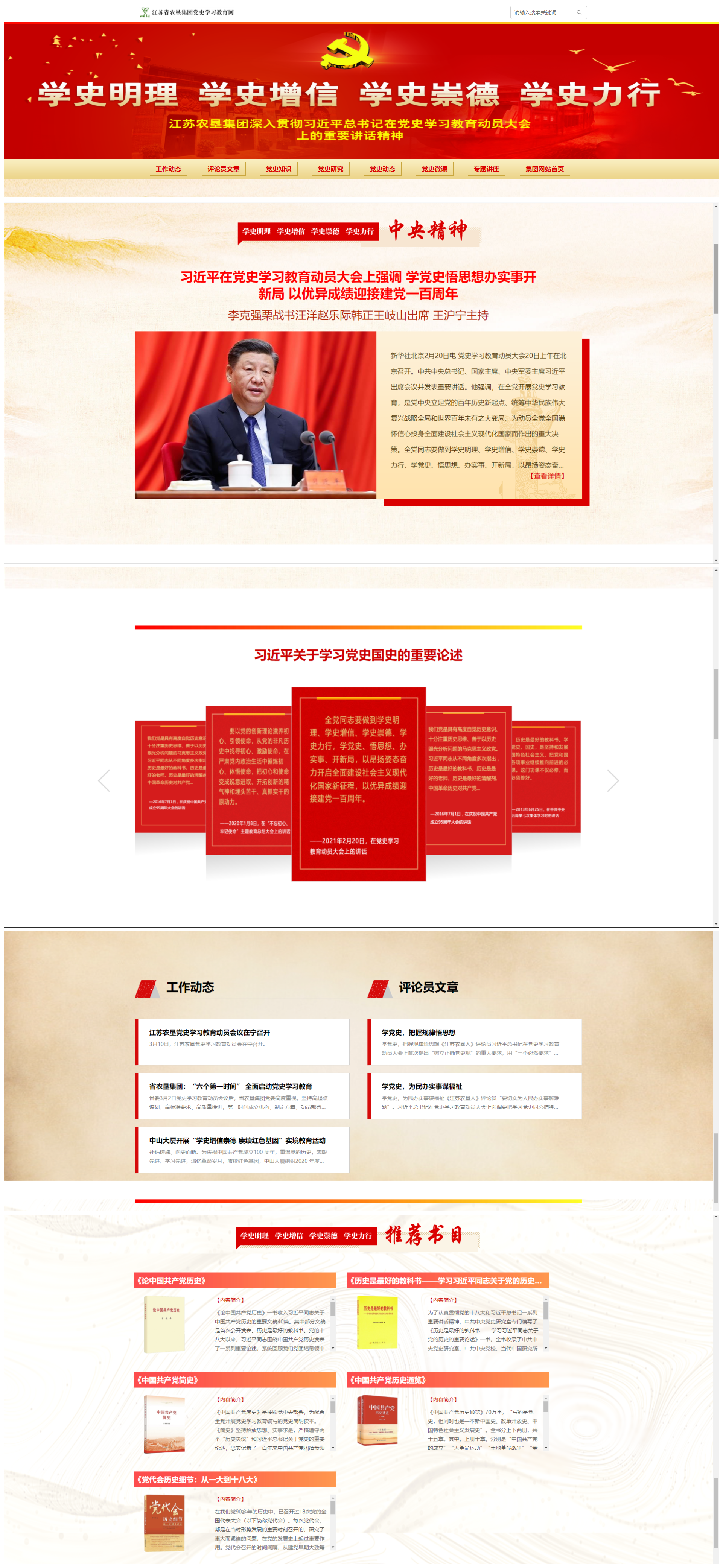 黨史學習教育活動開展以來,江蘇農墾在充分運用電視、報刊、微信公眾號、調頻廣播、電子顯示屏、文化長廊等宣傳載體的基礎上,注重創新開發網站載體功能,為充分發揮其方便快捷、信息量大、互動性強等特點,開發設立了黨史學習教育網站,網站下設工作動態、評論員文章、黨史知識、黨史研究、黨史動態、黨史微課、專題講座等7個欄目,搭建起黨員學習、互動交流的平臺。