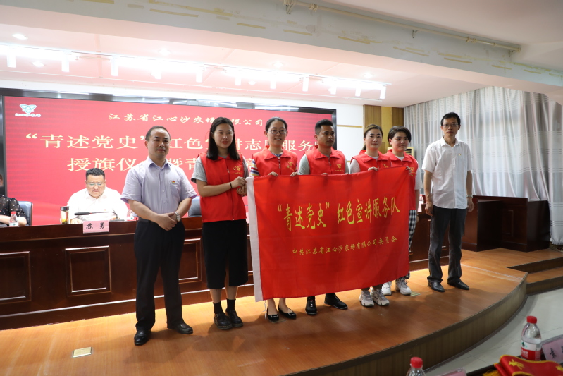 為深入學(xué)習(xí)貫徹習(xí)近平總書記在黨史學(xué)習(xí)教育動員大會上的重要講話精神,創(chuàng)新黨史學(xué)習(xí)教育形式,5月10日,江心沙農(nóng)場有限公司在職工之家二樓會議室隆重舉行了“青述黨史”紅色宣講志愿服務(wù)隊授旗儀式暨青年表彰大會。農(nóng)場公司黨委書記、董事長、分公司總經(jīng)理朱江勝,黨委副書記、總經(jīng)理、社區(qū)管委會主任薛忠等班子成員出席會議并講話。