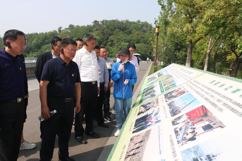 黨委書記滕金平等一行沿著總書記的足跡來到南通市五山地區(qū)濱江片區(qū),沿江邊步行看了濱江生態(tài)環(huán)境保護情況。并通過展板和講解員介紹了解了當(dāng)?shù)赝七M長江岸線環(huán)境綜合治理、實施長江水域禁捕退捕等情況。