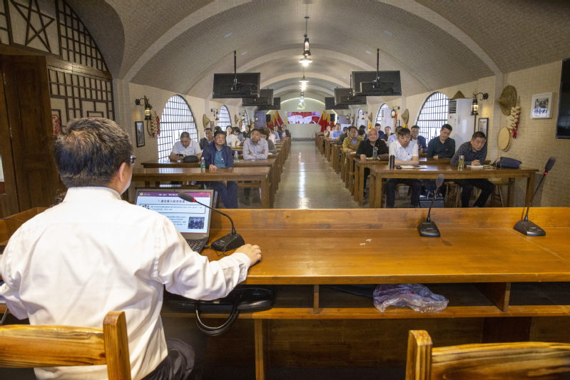 5月13日上午,蘇墾南通公司37名中層黨員干部圍坐在“窯洞”里,認(rèn)真聆聽了公司黨委書記、董事長(zhǎng)、農(nóng)發(fā)南通分公司總經(jīng)理嚴(yán)忠講授警示教育專題黨課。