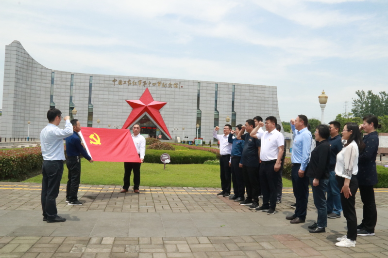 活動中,大家跟著習近平總書記在江蘇的足跡,在揚州運河三灣生態(tài)文化公園,參觀古運河畔生態(tài)修復后綻煥的風清水秀新顏面貌,認真學習新發(fā)展理念和生態(tài)文明建設樣板工程;在南通博物苑,追尋近代灘涂圍墾的開拓者、近代實業(yè)救國的先驅(qū)者張謇的足跡,重溫張謇墾牧之路,學習先賢張謇在民族存亡關頭,興辦實業(yè)、創(chuàng)辦學校,投身“實業(yè)救國,教育興邦”的愛國奉獻精神;在中國工農(nóng)紅軍第十四軍紀念館,全體黨員肅立在鮮紅的黨旗下,舉起右拳重溫了入黨誓詞。而后,踏著“紅色足跡”學黨史,重走紅色革命道路,回顧艱苦卓絕的斗爭歷程,深刻感受革命先輩不屈的民族精神和高尚的愛國情操,沉浸于這些“紅色瞬間”,每時每刻都在激勵著大家傳承紅色基因,賡續(xù)紅色血脈。