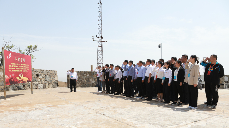 在開山島上空飄揚(yáng)的五星紅旗的見證下,全體黨員干部重溫了入黨誓詞。