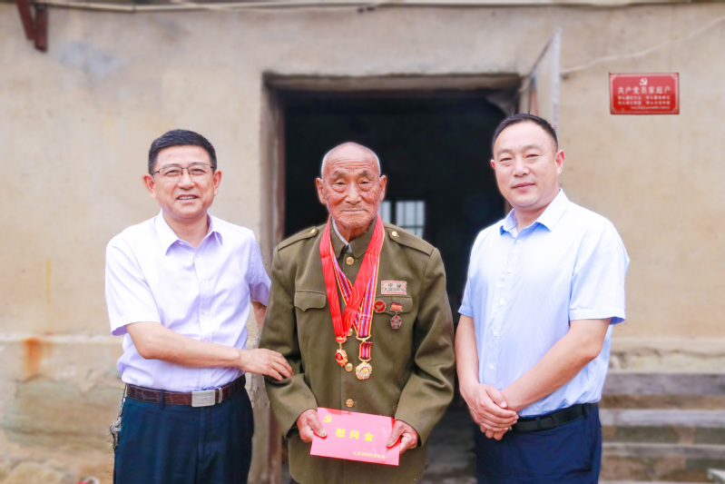 慰問中,王信學(xué)先后看望了89歲的抗美援朝老戰(zhàn)士闞立仁和同是89歲的抗美援朝老戰(zhàn)士孫慶余,與老戰(zhàn)士熱情相談,關(guān)切詢問了他們身體狀況、家庭生活情況,仔細(xì)端看老戰(zhàn)士們的獎?wù)伦C書,聆聽他們講述那段不凡經(jīng)歷,共同追憶崢嶸歲月。還為他們佩戴上熠熠生輝的“中國人民志愿軍抗美援朝出國作戰(zhàn)70周年”紀(jì)念章和“光榮在黨50年”紀(jì)念章,對老戰(zhàn)士們在抗美援朝戰(zhàn)爭中敢于斗爭、不怕犧牲的革命精神致以最崇高的敬意,感謝他們?yōu)閲龀龅呢暙I(xiàn)。