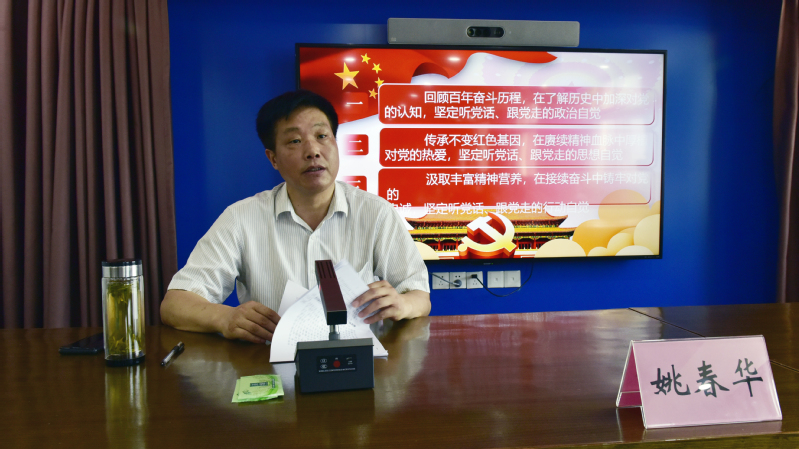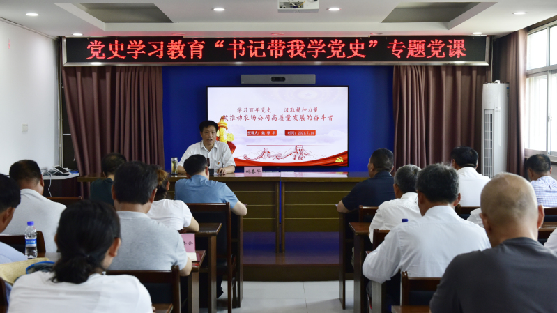 黨課中,姚春華以《學習百年黨史汲取精神力量做推動農場公司高質量發展的奮斗者》為題,以一百年來中國共產黨團結帶領中國人民在新民主主義革命時期、社會主義革命和建設時期、改革開放和社會主義現代化建設時期和中國特色社會主義新時代這四個歷史階段的奮斗歷程為主線,圍繞學習貫徹習近平總書記在黨史學習教育動員大會上的講話和在慶祝中國共產黨成立100周年大會上的重要講話精神,結合自己黨史學習教育以來的收獲體會,運用大量典型事例和黨史故事,從三個方面展開講解和闡述:第一是回顧百年奮斗歷程,在了解歷史中加深對黨的認知,堅定聽黨話、跟黨走的政治自覺。指出,只有了解過去,才能正確認識現在,只有正確認識現在,才能科學把握未來。通過學習黨史,可以加深對歷史經驗的認識、提高對歷史功能的認識、提升用好歷史規律的自覺。第二是傳承不變紅色基因,在賡續精神血脈中厚植對黨的熱愛,堅定聽黨話、跟黨走的思想自覺。重點要從偉大建黨精神這一中國共產黨戰無不勝、創造奇跡的致勝法寶和基因密碼中,找準立黨興黨強黨的精神之“源”,從黨的百年歷史中感悟信仰的力量、感知人民的力量、感念愛國主義情懷、感想獨立自主的精神、感受自我革命的勇氣、感佩天下大同的情懷。第三是汲取豐富精神營養,在接續奮斗中鑄牢對黨的忠誠,堅定聽黨話、跟黨走的行動自覺。著重要用黨的奮斗歷程和偉大成就鼓舞斗志、明確方向,用黨的光榮傳統和優良作風堅定信念、凝聚力量,用黨的實踐創造和歷史經驗啟迪智慧、砥礪品格。具體要在對照黨的性質宗旨中鑄牢堅定信仰、矢志不渝的忠誠之魂,要在體悟黨的光榮傳統優良作風中修好認真負責、精益求精的成事之道,要在學習黨的非凡歷程中凝聚堅忍不拔、無私奉獻的奮進之力,要在推動農場公司高質量發展中履行接續奮斗、擔當作為的拼搏之責,要在汲取黨的歷史經驗和教訓中涵養嚴于律己、崇德向善的干凈之氣。