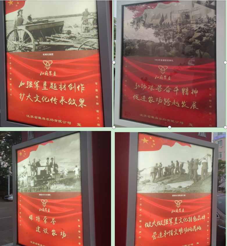 今年5月初,淮海農場公司通過在一公里長的淮海路兩邊,安裝36座宣傳廣告燈箱,并以這種形式慶祝中國共產黨成立100周年的同時,還將軍墾傳統文化有效地融入到路邊廣告的燈箱中,通過讓廣大職工居民和過往游客,在研讀觀看中,體味老照片背后生動的故事,了解軍墾傳統文化標語對推進農場五個文明建設中的作用,從而更加深刻地了解淮海農建四師將士們創建的軍墾傳統文化,并人傳承中更好地踐行好淮海精神,為“創新淮海、實力淮海、和諧淮海、美麗淮?!睜I造出持續發展的動力。附:淮海路兩側路邊廣告燈箱標語欣賞。
