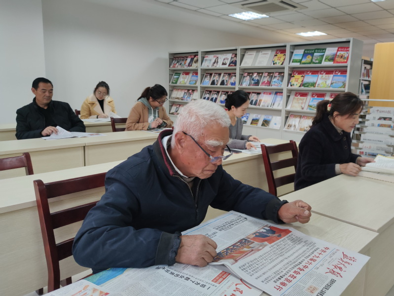 各基層黨支部即日起迅速以各種形式,掀起對六中全會精神進行學習討論和深化吸收。淮海農場社區充分發揮新時代文明實踐所的學習平臺地位,經常更新并充實職工書屋的書報藏書量,引導職工居民緊跟時代脈搏充電學習。圖為1112日下午,幾名職工居民第一時間在書屋內認真觀看刊有黨的十九屆六中全會精神的報紙。