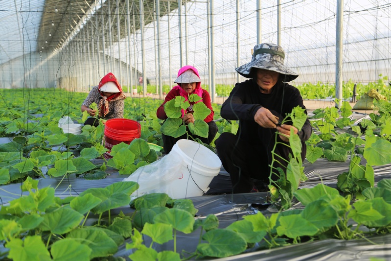 隨著秋季的到來,崗埠高效農業示范園也忙碌起來。位于園區東側的28*100型的4號溫室大棚內,工人們正忙碌著進行水果黃瓜吊藤蔓和去除多余枝葉等秋季管理工作。在這個季節,他們需要更加精心地照料這些綠意盎然的植物,以確保在接下來的幾個月里,水果黃瓜能夠持續豐收。“今年我們總共種植了5000多株水果黃瓜,目前氣溫光照條件很好,長勢不錯。”園區負責人包明建介紹,秋季的氣候條件對水果黃瓜的生長至關重要。由于晝夜溫差較大,大棚內的溫度管理成為園區關注的焦點。為了保證水果黃瓜的正常生長,園區管理人員需要適時調整大棚內的溫度和濕度。通過使用現代化的溫控設備,管理人員可以精確地控制大棚內的環境,確保水果黃瓜在適宜的條件下生長。除了溫度管理,水肥管理也是秋季水果黃瓜種植的關鍵環節。隨著黃瓜進入生長旺盛期,對養分的需求量逐漸增加。園區充分運用水肥一體化系統,根據黃瓜的生長階段和天氣情況,將有機肥與灌溉相結合,進行科學配比,適時進行灌溉,以保證黃瓜的健康生長。“為了確保水果黃瓜的綠色無公害,我們在防蟲方面,也采取了物理方法,最大程度保證果蔬作物的新鮮和品質。”在管理人員的精心照料下,大棚內的水果黃瓜長勢喜人,綠