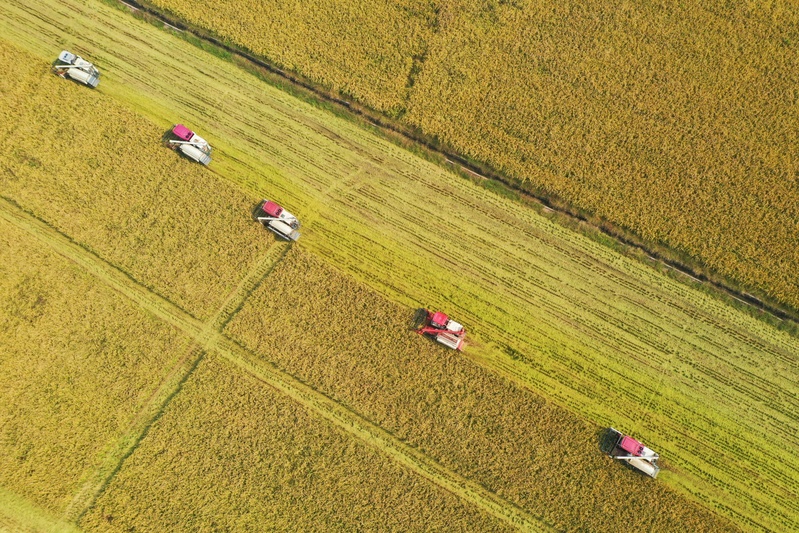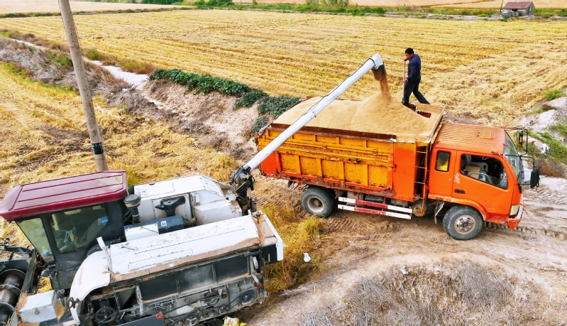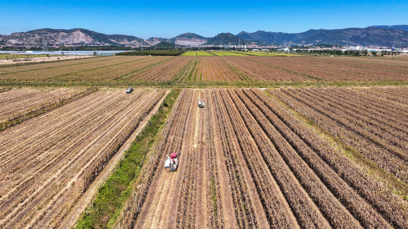 時下,正式秋收好時節,在蘇墾農發云臺分公司廣袤的田野上,豆莢搖曳如鈴,玉米金黃飽滿,伴隨著收割機的轟鳴聲,蘇墾農發云臺分公司1.1萬畝玉米大豆復合種植“喜開鐮”,工作人員搶抓晴好天氣,及時收割、晾曬,開始了緊張而有序的收割工作。蘇墾農發云臺分公司緊盯全年糧食生產目標任務,按照江蘇省農墾集團的“五統一”模式為標準,通過“4+4”復合種植模式,充分發揮高位作物玉米的邊行優勢,擴大低位作物大豆受光空間,實現作物協同共生、一季雙收。為了抓好今年“三秋”工作,蘇墾農發云臺分公司制定了各大隊組織分工、產量目標、成本管控、生產進度、作業質量、田間苗情、病蟲草害控制、場頭管理與糧食入庫銷售、質控平臺運行、農業面源污染治理、藥肥雙減增效、安全生產等12項“三秋”考核內容,并多次開展技術培訓,為抓好“三秋”工作提供組織保證、考核目標和技術標準?!翱礃幼?,今年又是一個豐收年?!币淮箨犼犻L王飛抓起一把玉米說?!伴_始作業前,我們對所有農機具進行了安全自查,確保收割機狀態良好,在玉米收割過程中我們嚴格按照玉米收獲作業質量管理規程,真正實現玉米籽粒損失率要小于等于百分之二,籽粒破損率要小于等于百分之五的目標任務?!?/div>