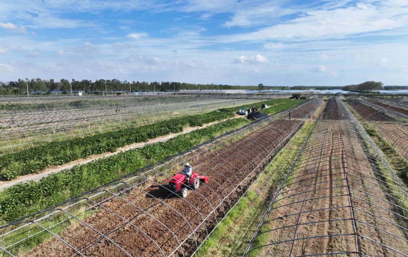 9月23日,在淮海農場高效園區種植基地,隨著機器的轟鳴聲,工作人員在鋼架大棚內對土地進行旋耕鋤草作業,為即將到來的11月份羊肚菌種植季做好先期準備。該場今年羊肚菌種植面積將擴大到30畝,目前正進行種植前的土壤翻耕改良和鋼架大棚準備工作。