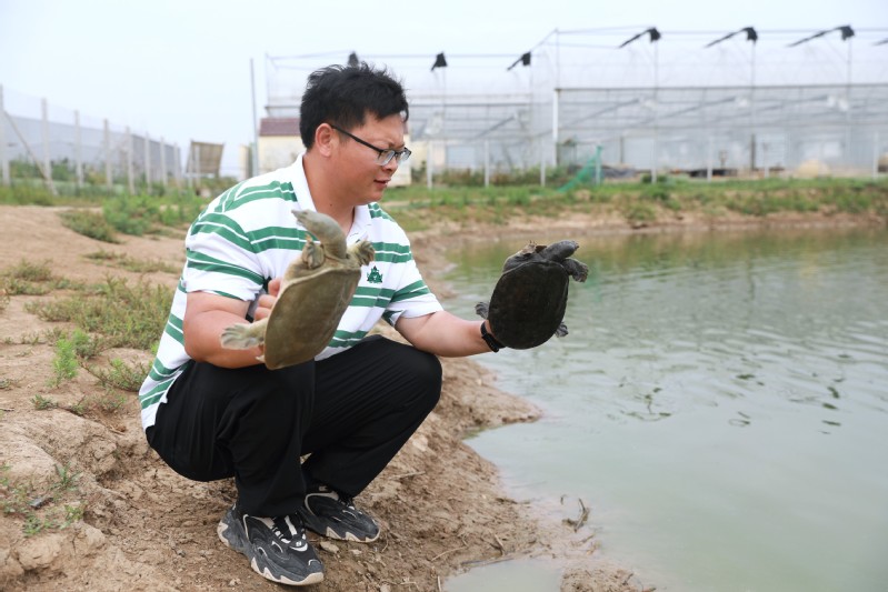 中午走進濱淮農場養殖中心甲魚養殖塘,一只只甲魚正“愜意”地趴在岸邊曬背,水面上也不時有甲魚探出頭來呼吸。養殖中心主任助理王勝正在塘邊取樣稱重,“我們投喂了7個多月的時間,甲魚規格從去年的平均1.4斤長到3.2斤,大的已經有5斤半了。”2023年,在經過考察調研后,濱淮結合自身小規模塘口的特點,采用綠色和健康的養殖理念,創新開展20畝的甲魚仿生態養殖模式,該模式模擬甲魚野生的生活環境,綜合套養經濟魚類和對蝦,養殖出來的甲魚肉質更加鮮美,風味也更加接近野生甲魚,更受市場的認可。為模擬好甲魚的自然生長環境,養殖中心在甲魚塘周邊預留8米土路,并在水邊設置緩坡,作為甲魚活動場所和曬臺。收購鮮活小雜魚冰凍儲存作為飼料,同時每半個月換一次水,保證魚塘水質干凈。甲魚養殖中的應激反應是一個重要的養殖管理問題,尤其從購買甲魚苗到進塘這段時間,環境的改變對甲魚苗的成活率有很大的影響。為保障魚苗的成活率,養殖中心做了大量工作。購買魚苗前提前聯系廠家降低大棚溫度、控制喂食,挑選規格大、活力好的甲魚苗,并在運輸前進行水浴消毒。在做好前期工作后帶著魚苗連夜出發,趕在中午投放至已事先進行消毒、解毒、潑灑抗應激藥的魚塘