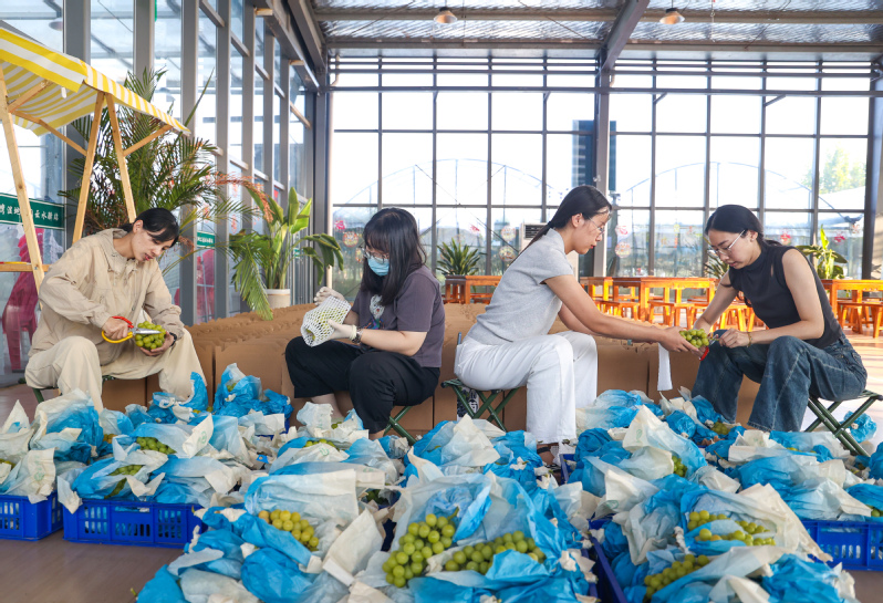 佳節將至,云臺農場云水灣濕地公園搶抓節日市場“消費季”,各式農產品變身“佳節大禮包”,吸引大批客戶前來訂貨,為節日市場注入新活力。走進云水灣濕地公園,園區內一派繁忙的工作景象,工作人員分工明確采摘組、打包組、配貨組……大家配合默契,加班加點備足貨品,全力保障農產品市場供給。“備戰佳節市場,我們的產品,從挑選、包裝到配送,每個環節我們都嚴格把控,確保每位客戶都能收到滿意的產品,今年我們準備了葡萄、鮮梨、草雞蛋等農產品禮盒,現已售出1500余份,實現收益約20萬元,訂單量還在持續攀升。”云水灣濕地公園常務副總經理卜馳龍說。此外,為了拓寬銷路,園區還推出限時優惠、團購折扣等促銷活動,進一步激發了消費者的購買熱情。