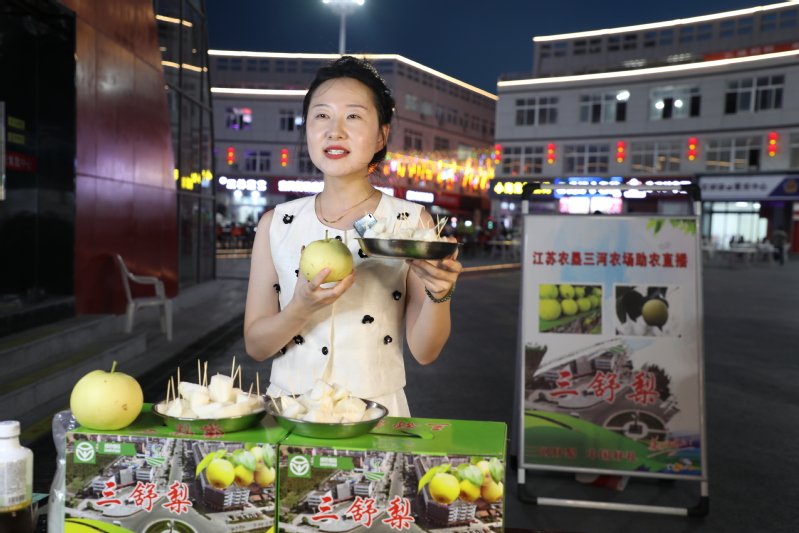 為進一步提升三河“三舒”梨知名度,拓展銷售渠道。近日,三河開啟抖音直播銷售新模式,將直播間從室內搬到室外,分別在三河職工文化廣場、電力公園、盱眙山水廣場、剋街等地進行戶外現場直播,并通過關注抖音號免費套梨、才藝表演品梨等現場互動吸引了一大波粉絲線上圍觀,每場觀看人數達1萬余人次,戶外直播以來,線上線下購買梨的客戶絡繹不絕,訂單量節節攀升。