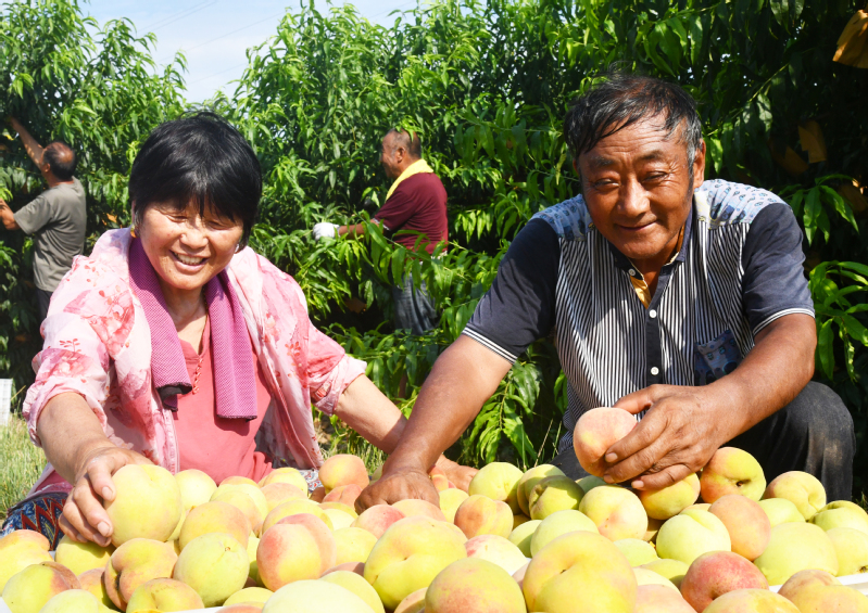 7月23日一早,在淮海農場140畝標準化果園內,“柳條白鳳”“湖景蜜露”等深受場內外客戶歡迎的水蜜桃品種正進入采摘期,園內員工正抓住上午的陰涼天氣搶摘豐收的桃子,以滿足周邊市場的需求。