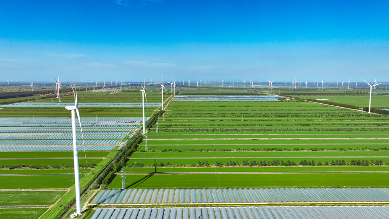 7月24日,新洋農場風力發電機組迎風旋轉,源源不斷輸送綠色能源,與高標準農田、林帶相映成景。近年來,新洋農場公司充分發揮風力資源優勢,發展風力發電綠色新能源產業,助力綠色低碳發展。